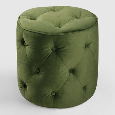 Modern Bedroom Ottoman Bench Pink Velvet Button Tufted Round Ottoman Stool