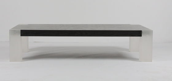 This coffee table is a wonderful addition to our Realsun Collection. The top is made of natural solid walnut that is carefully laid out in a herringbone pattern and oiled by hand. The table is supported with two elegant Lucite plinth legs.