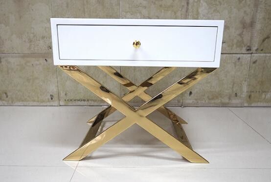White painted gold / polished metal base hotel night stand / hotel bedside table / casegoods